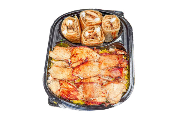1/4 chicken thigh, 4 chicken shawerma pieces, basmati rice, Lebanese bites
