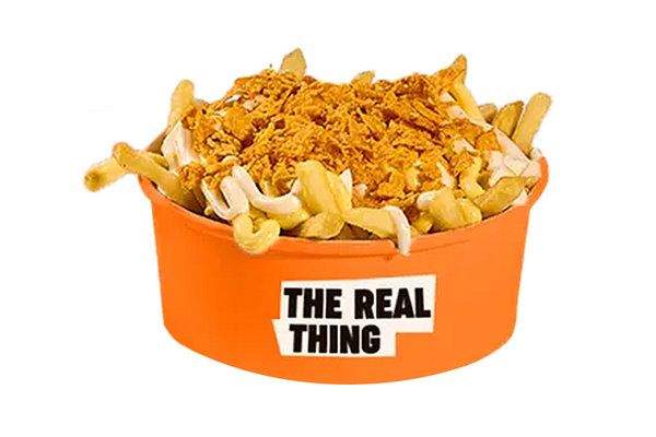 قطع من الجبنة الموتزاريلا الكرسبي الصغيرة مع البيكون البقري، البرجر، الكاتشب، المستردة وصوص البافالو الكريمي