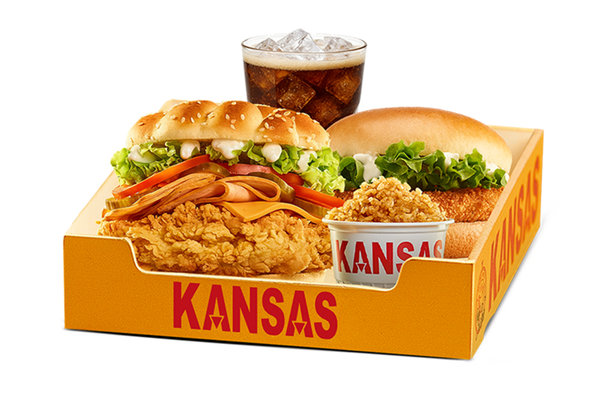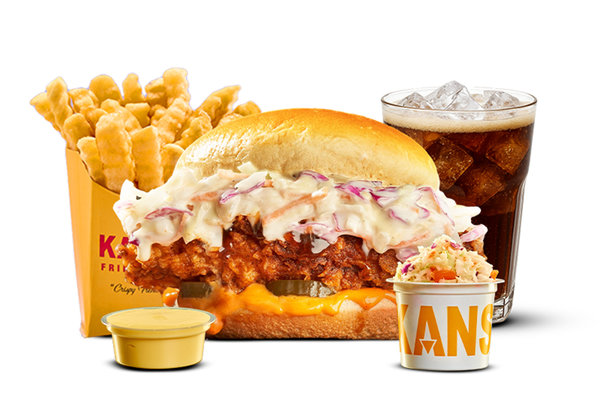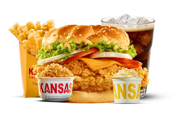 ساندوتش بيج دريب، بطاطس وسط، صوص كنساس الخاص، كول سلو صغير، مخلل او هالبينو