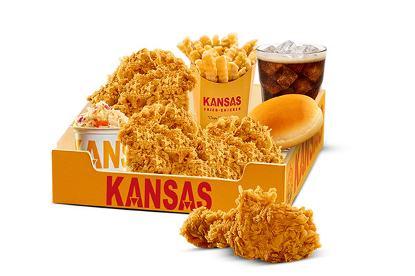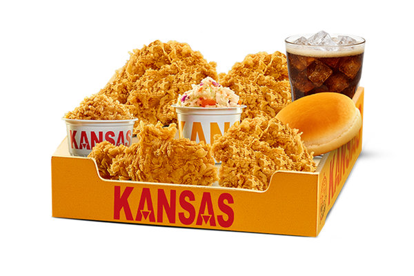 8 قطع تندر، 2 بطاطس مقلية وسط، 4 Aتوست، صوص كنساس الخاص، مستردة بالعسل و سويت شيلي
