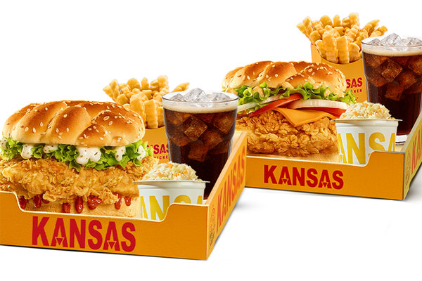 3 قطع دجاج، 1 بطاطس صغيرة، 1 سلطة كول سلو صغيرة، 1 برجر لحم بقري، كاتشب، خبز، 1 مشروب من اختيارك