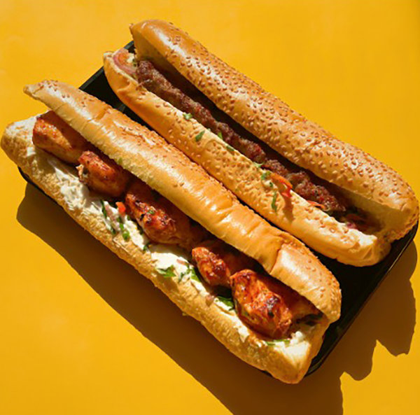 ساندوتش كفتة لحمة فرنساوي، ساندوتش شيش طاووق فرنساوي، ثومية، مخلل
