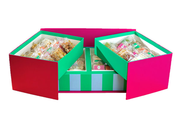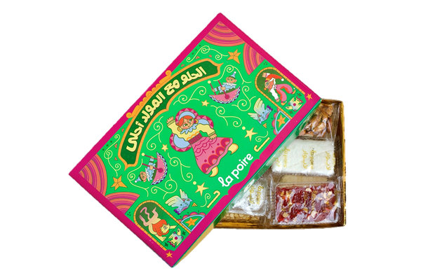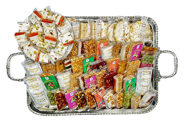 ساندوتش جوز هند دومية فول سوداني، ملبن جيلي الوان، ملبن تين، سويسرول سمسم ملبن بندق، ملبن سادة، نوجه فول سادة، نوجه فول قمر الدين، سويسرول جوز هند شوكولاتة، غوايش، ملبن رش فسدق، دومية فول اصفر، قرص حمص، قرص سوداني، نواعم
