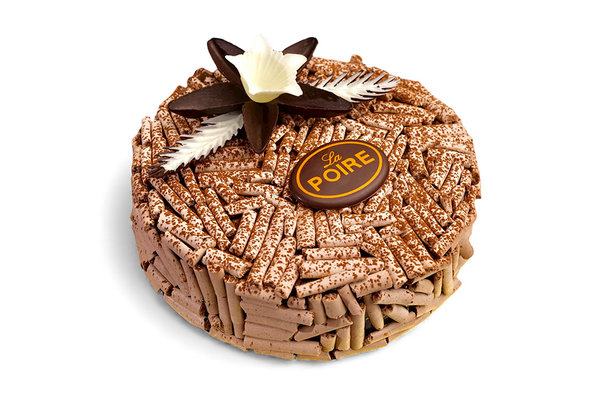 طبقتين من كيك فادج الشوكولاتة محشوة بكريمة الشوكولاتة بالنوتيلا، الكرسبي, مغطاه بطبقة الكريمة المميزة من لابوار، مزينة باجلاسيه شوكولاتة، الكرسبي