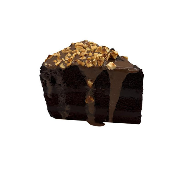 يتكوّن من طبقات فادج الشوكولاتة والجناش، يُقدَّم مع صوص شوكولاتة وبندق مجروش مكرمل