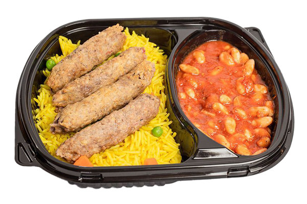 810 سعر حراري، 2 قطعة كفتة مشوية، 3 قطع شيش طاووق، تقدم مع صلصة مكرونة حمراء