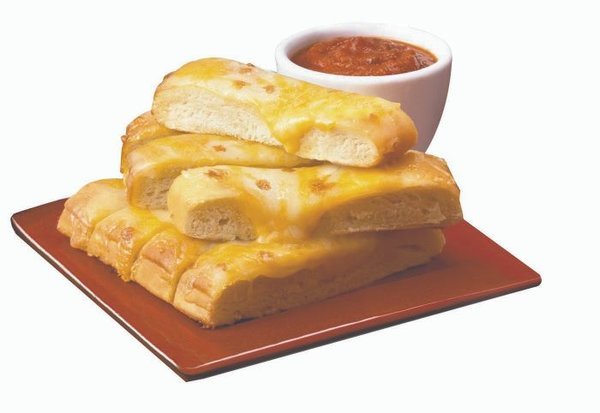 اصابع خبز محشوة بجبنة موتزاريلا، قطع البيبرونى البقرى المبهر بالفلفل الاخضر، البصل، يقدم مع صلصة مارينارا