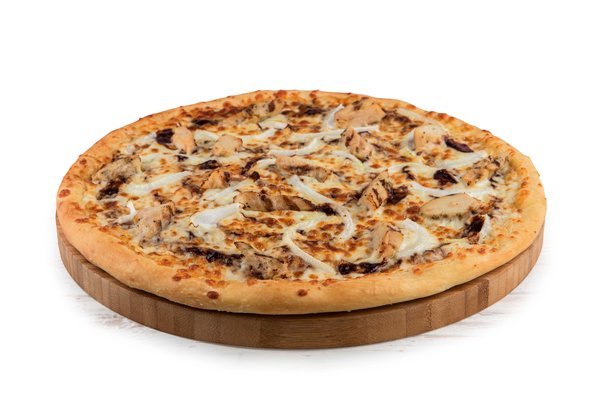قطع دجاج مشوى، بصل، موتزاريلا، جبنة امريكى، اوريجانو مع اختيارك من صوص باربيكيو، رانش او حار
