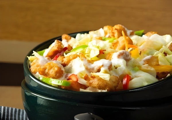 Crispy chicken with lettuce, bell pepper, cucumber and topped creamy sauce