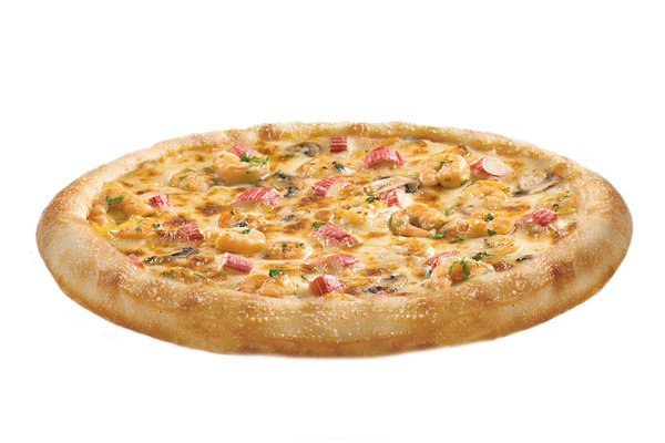 Shrimp, calamari, onion, garlic, green pepper, thyme, tomato sauce and mozzarella cheese
